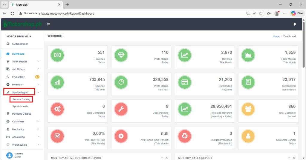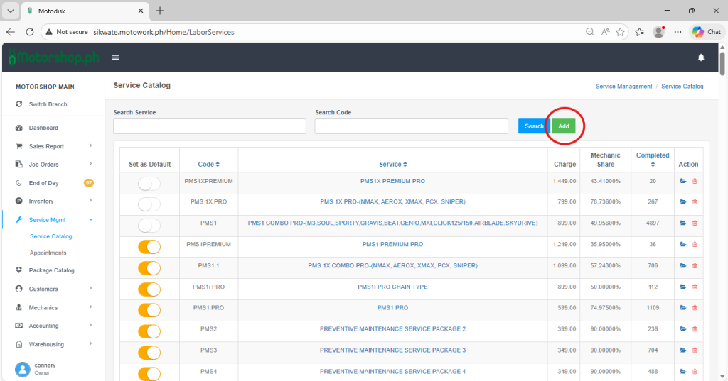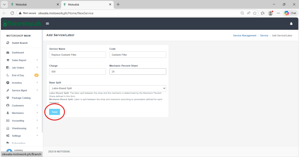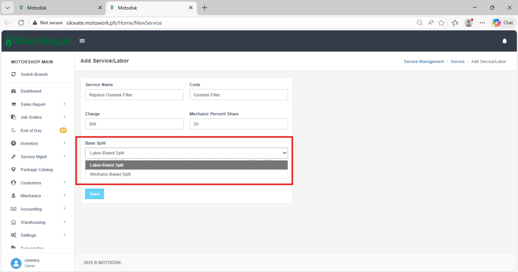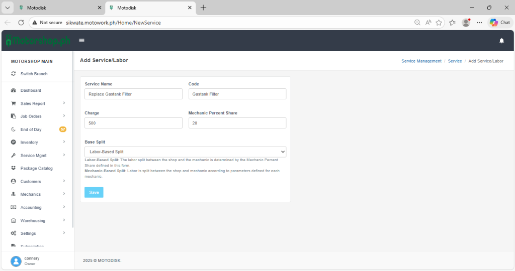 (iv) Mechanic Percent Share – The comission of the mechanic from the service.
