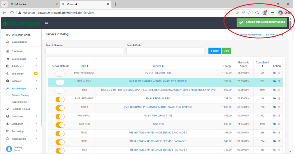 7. After saving, the notification will pop up from the upper right corner. it indicates that the service is successfully added.
