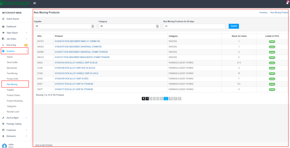 • In the left sidebar, find “MOTORSHOP MAIN”.
