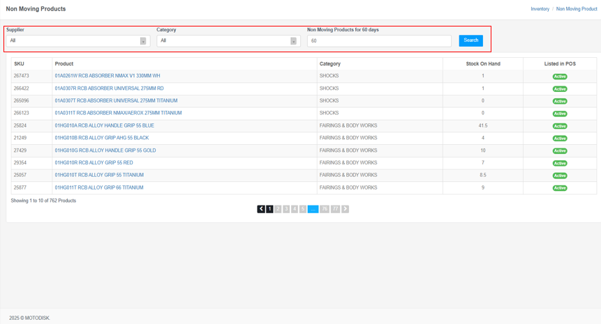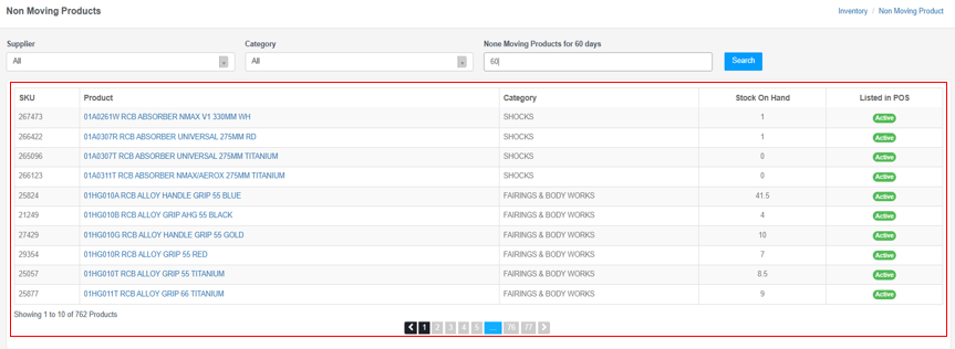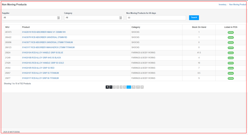 The Non-Moving Products page includes: