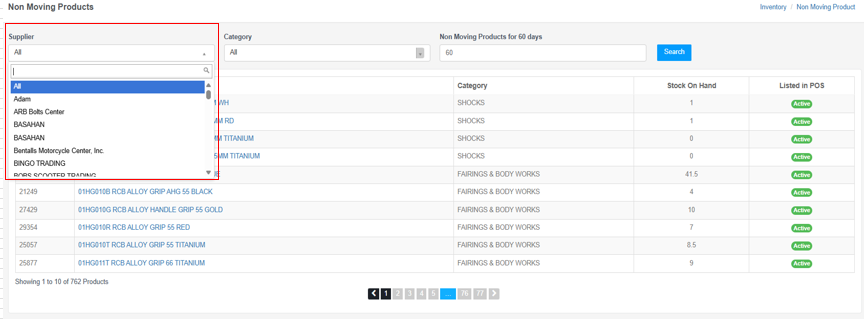 7. Filter by supplier: Identify suppliers whose products aren’t moving.