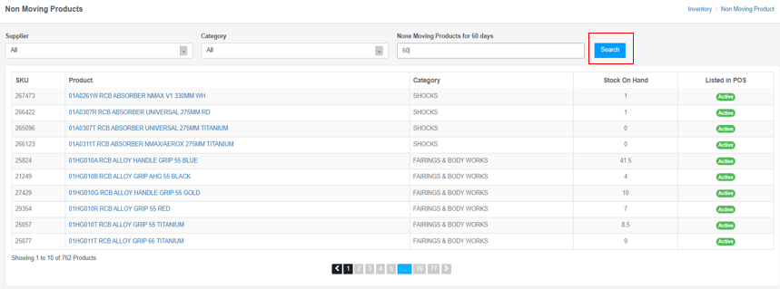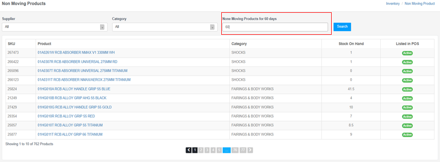 Non Moving Products for X Days
