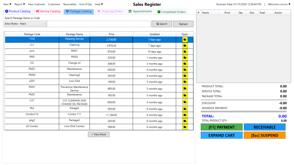 Step 2: Select the Package availed by the Customer by clicking the Folder icon
