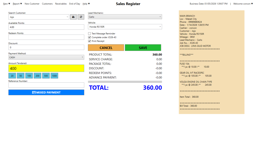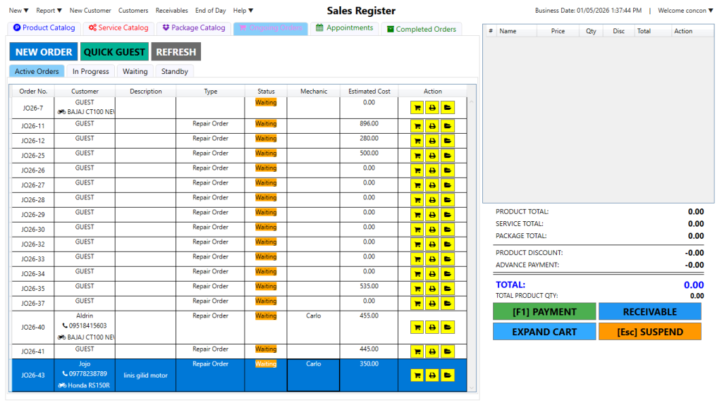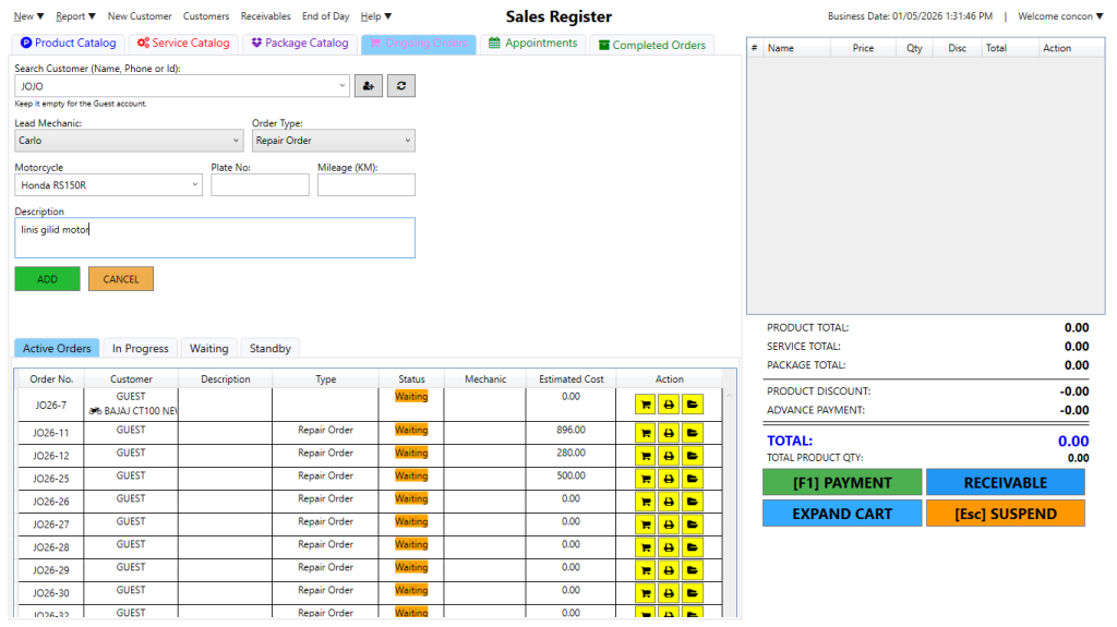 It’s a good idea to add a unique name or label to each Job Order so you can easily tell which one belongs to which customer. This helps avoid confusion when adding more products or services later, especially if you have multiple orders showing on the screen.