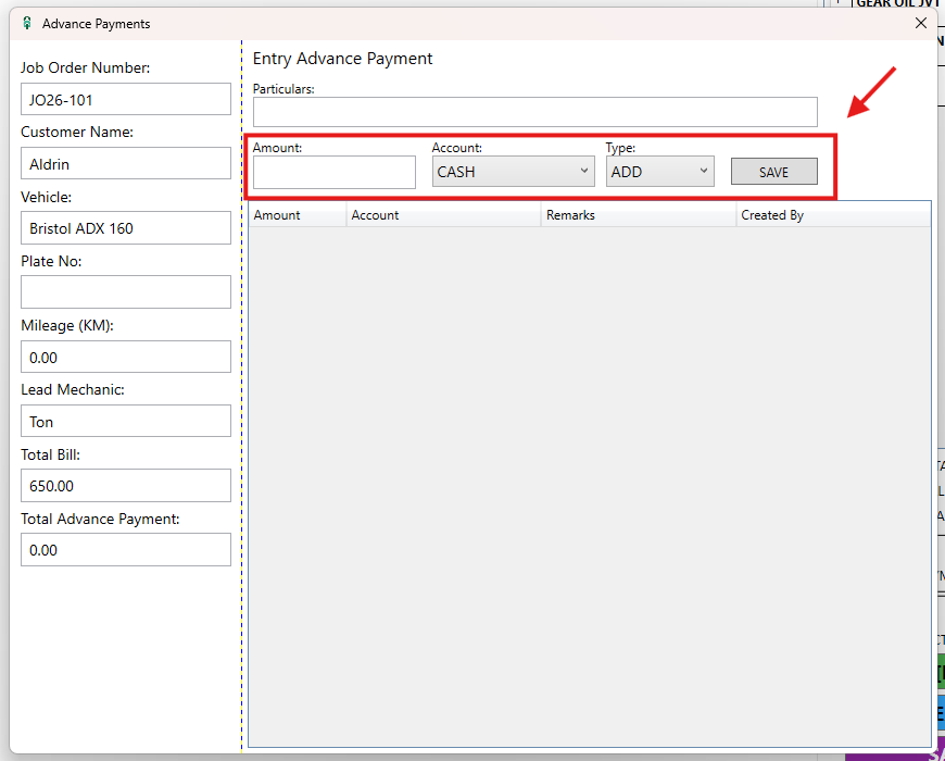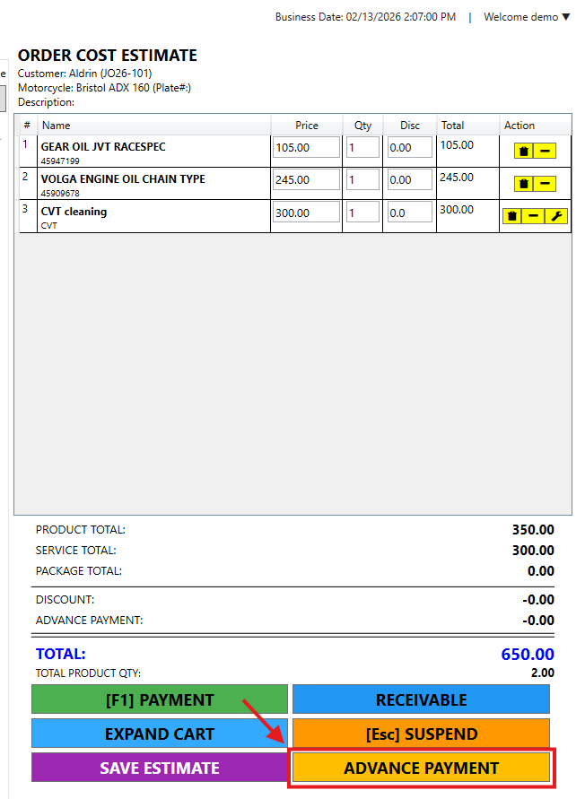 Step 3: Click the Advance Payment button at the bottom of the screen.