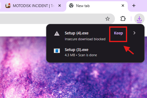 Step 1: Click Keep on your browser’s download bar to save the installer.