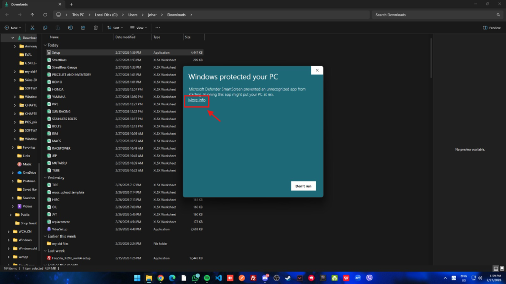 Step 2: Click More info then Run anyway to bypass the Windows security warning.