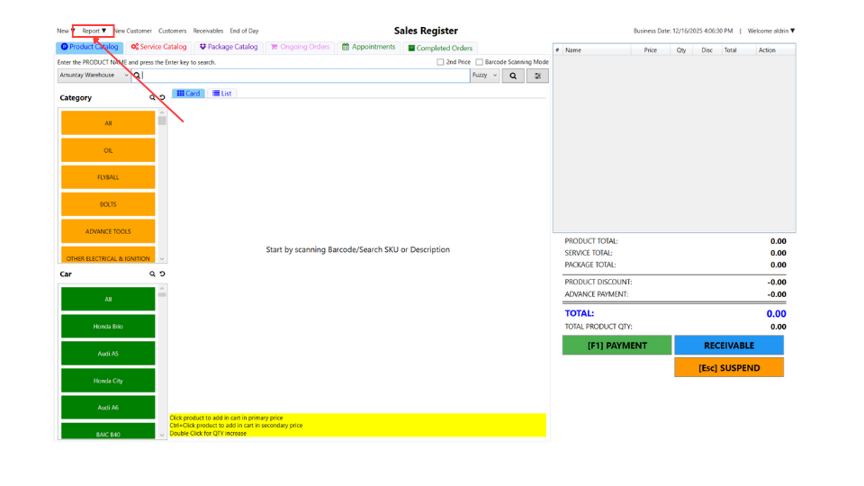 - Note: If the end-of-day process has already been executed, please perform a rollback by following this link