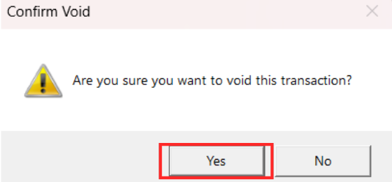 4. After clicking the void circle, you will receive a confirmation. Click Yes to void the transaction